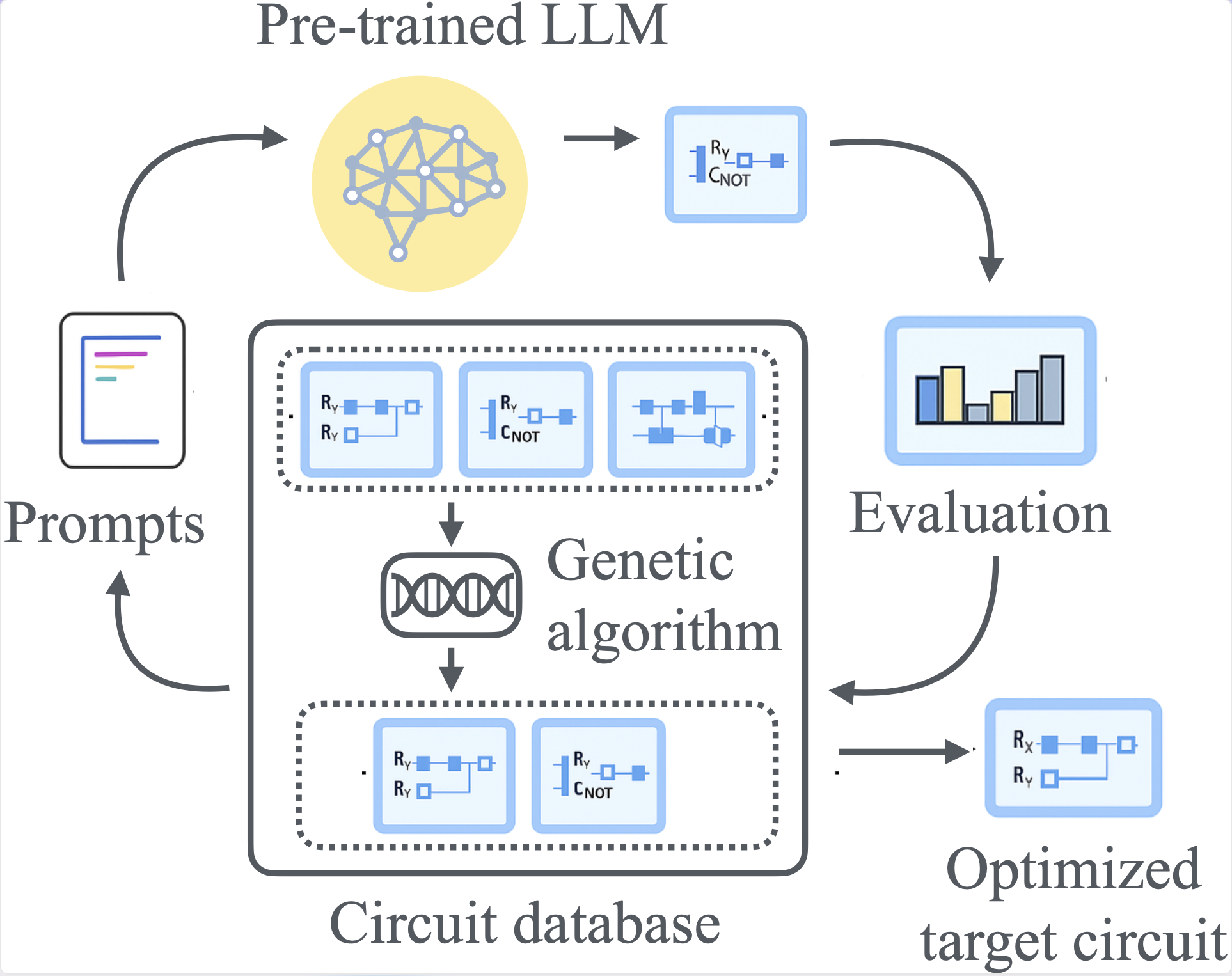 Mar. In a recent work, we proposed using LLM (DeepSeek-Distill-Qwen-32B) + feedback + genetic algorithm to automate quantum state preparation on quantum circuits. More refined results are on the way. At the moment, the Pros we found: ✅ Works with natural language prompts (no physics specs like boundaries/symmetry/Hamiltonian). ✅ Finds optimal circuits for Ising/XY model ground states in O(10-100) hrs—no expert input, strict parameter limits. ✅ Circuits scale to larger systems. ✅ LLM intuitively proposed a boundary-sensitive, symmetry-preserving rotation, hinting at “learning” physics……. Importantly, the framework is not limited to quantum circuit design but has a broad application in science. If we frame everything as a search problem, AI will surpass humans, given good evaluation + evolution. However, designing those is hard, and evaluation costs can break the system.